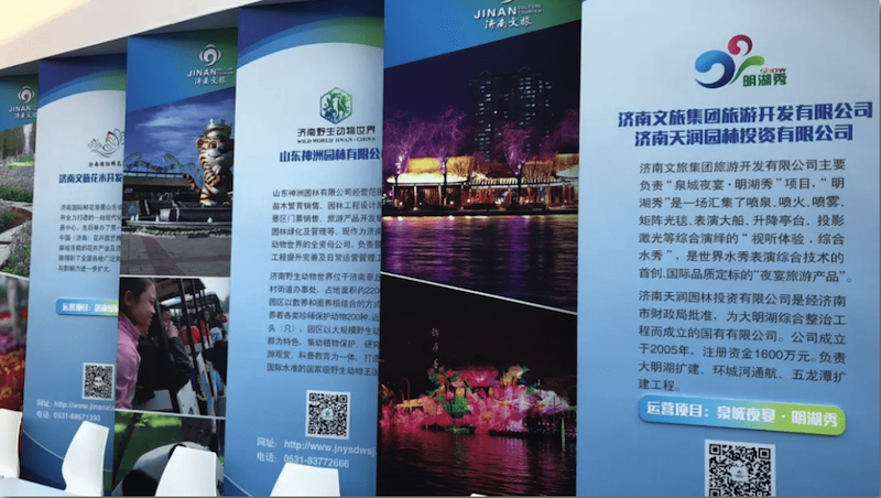集团展位位于文化产业综合展示区,临近中央舞台,是人流量最大的核心区域。展区面积约150平米,济南素有“潇洒似江南”的美誉,设计以中国传统园林的元素结合现代简约的设计手段,营造一个具有古典气息、文化气质、自然理念的展示空间,展示太阳成集团tyc138发展集团及各子公司的靓丽名片。同时采用平昌冬奥会“北京八分钟”同款Led透明显示屏,结合展厅圆形景窗,形成炫彩3D的立体效果,展示集团Logo形象,引来无数市民及游客驻足观赏。
