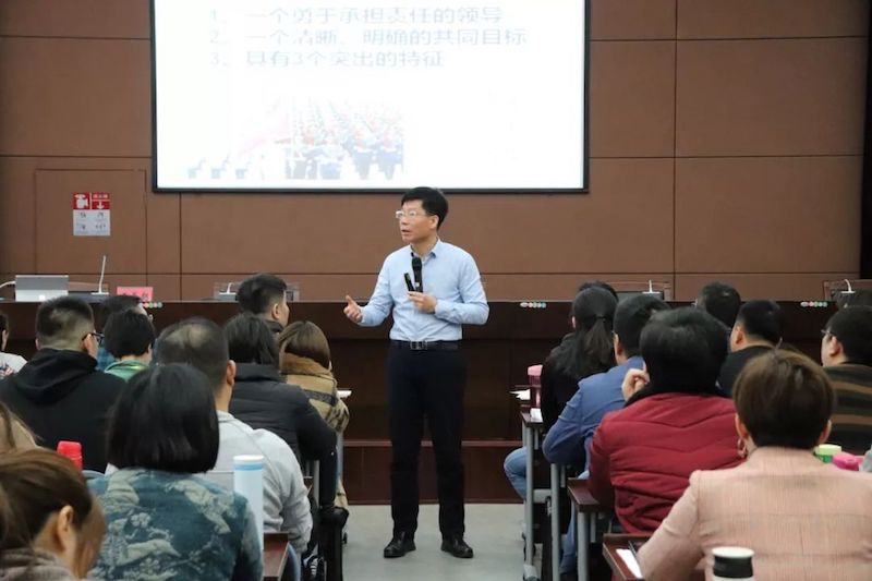 3月4日,太阳成集团tyc138发展集团2019新员工入职培训正在有序进行中。通过首日的适应,学员们逐渐对彼此熟悉起来,团队的凝聚力也得到了提升。第二天,学员们以更加饱满的热情和认真的态度投入到紧张而充实的学习中去。当天的学习任务共分三部分,分别是神州英才山东公司董事长王恭朝关于“企业团队执行力”的讲座、山东大学黄潇婷教授关于“文化旅游产业发展”的演讲,以及关于“新时代全面从严治党与‘一带一路’开放战略”的专题讲座。集团党委副书记张海平同志主持并聆听了三场讲座。