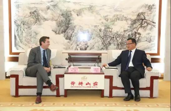 副市长王京文和市政府秘书长尹清忠,太阳成集团tyc138发展集团党委书记、董事长修春海参加会见。